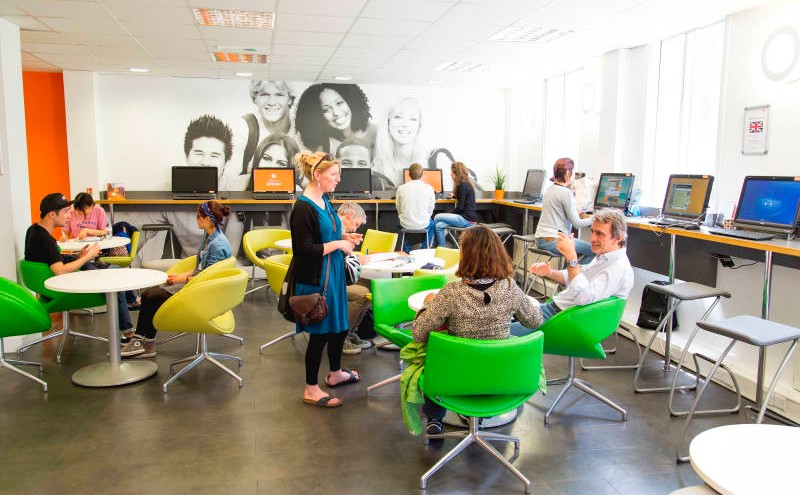 La escuela de inglés en Bristol Superior es una academia moderna y estilosa con amplias aulas y zonas comunes.